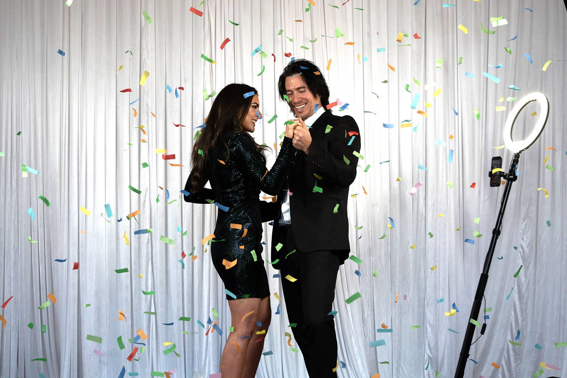 Ob najemu selfie-boxa vam omogočamo tudi postavitev tekstilnega ozadja v obliki zaves v črni, srebrni, zlati, rdeči. modri ali rose gold barvi. Postavitev drugačnega ozadja je možna po dogovoru.